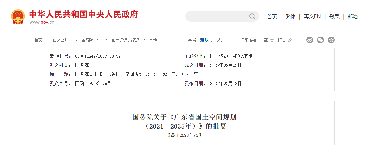 自然資源部《關(guān)于報(bào)請(qǐng)批準(zhǔn)〈廣東省國(guó)土空間規(guī)劃(2021—2035年)〉的請(qǐng)示》(自然資發(fā)〔2023〕76號(hào))收悉。現(xiàn)批復(fù)如下: