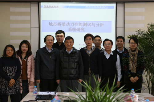 12月10日,由院檢測中心承擔的住建部科技計劃項目、院自籌應用研究課題“城市橋梁動力性能測試與分析系統研究”在北京順利通過驗收。本次驗收委員會由北京市市政工程研究院研究員鐘銘、中交公路規劃設計院有限公司檢測中心教授級高工張新越、交通運輸部公路科學研究院研究員羅翥、中冶建筑研究總院有限公司檢測中心教授級高工楊勇新、院檢測中心研究員張仁瑜、中交四公局(北京)公路試驗檢測科技有限公司高工卜凡民、北京市建設工程質量第三檢測所有限責任公司教授級高工田春艷組成,鐘銘研究員擔任主任委員。院檢測中心張仁瑜副主任、課題驗收專家及課題組成員等共11人參加了會議。會上,驗收專家審核了驗收資料,聽取了課題組的匯報,經質詢和討論,認為該項目對城市橋梁結構在環境激勵下不同模態分析算法進行了比較研究,并對不同的算法進行了優化,經驗證改進后的算法可靠,適用于橋梁結構模態分析。項目開發的工程結構模態分析軟件(MAES),經有限元比較和實橋測試結果驗證,具有較高的精度和計算效率。軟件具有完全自主知識產權,填補了城市橋梁結構模態分析軟件方面的空白。驗收專家認為課題完成了研究任務,達到了預期目標,研究成果達到國內領先水平,一致同意通過驗收。
